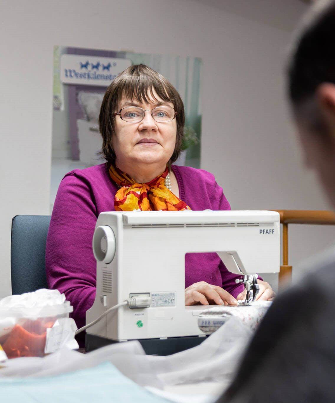 Wenn Sie sich ein angenehm kühles Amaranthkissen auf die Augen legen, dann haben Sie das vielleicht unserer Michaela zu verdanken. Stoffe aussuchen, abmessen und zuschneiden, nähen: In unserer Schneiderei auf dem Frauenberg Fulda stellt Sie die kleinen Augenschmeichler in Eigenregie her.
