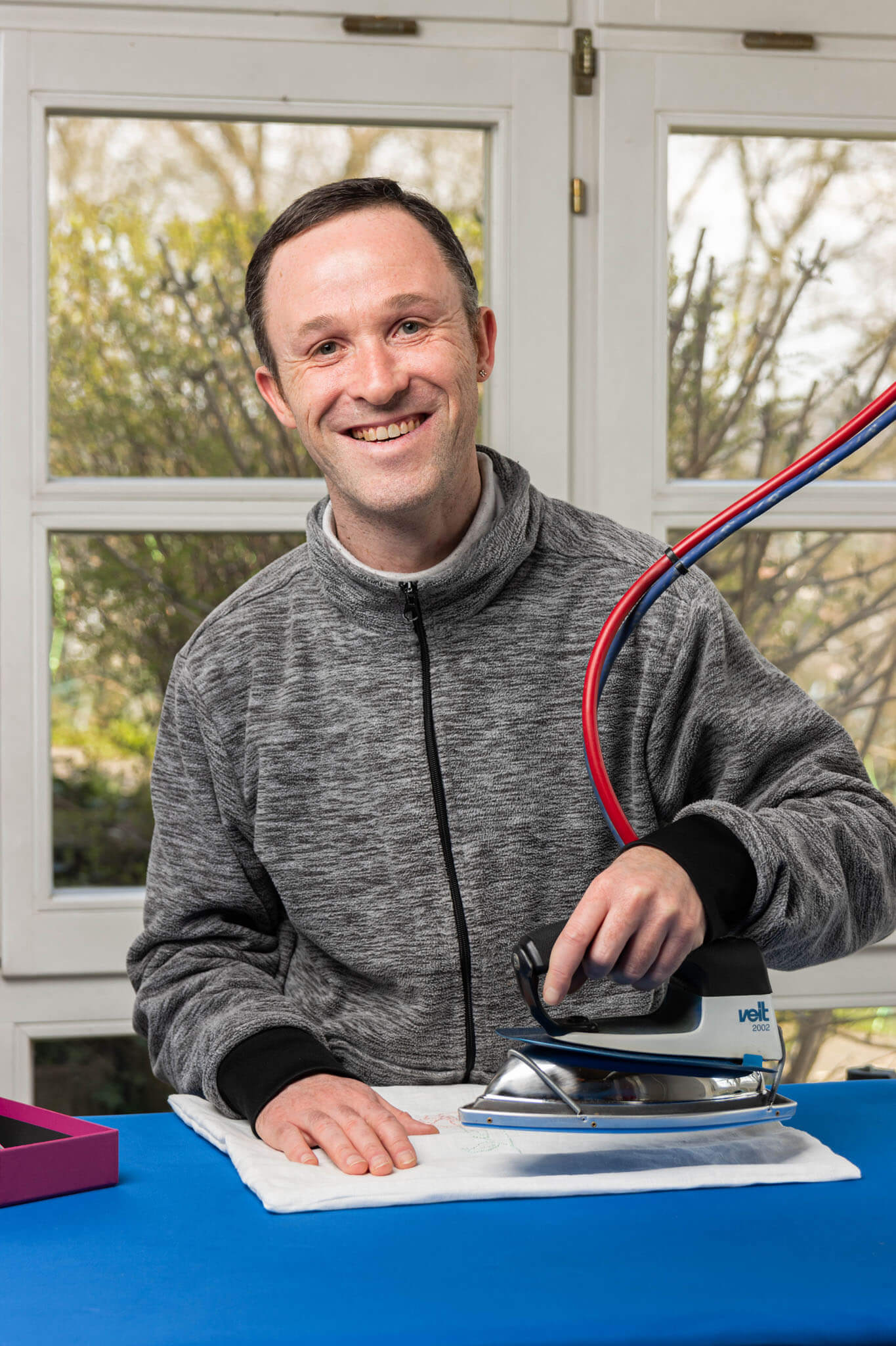 Wenn es in unserer Schneiderei auf dem Frauenberg in Fulda rattert und zischt, ist Jochen bestimmt nicht weit: Als Technikfan sind Nähmaschinen und Bügelautomaten genau sein Ding. Seinen Weg in die Schneiderei hat er während seiner Zeit in der Arbeitsschule Startbahn gefunden. Durch ein Praktikum wurde ihm klar, wie sehr ihm schöne Stoffe und die wunderbaren Sachen, die man daraus anfertigen kann, gefallen.