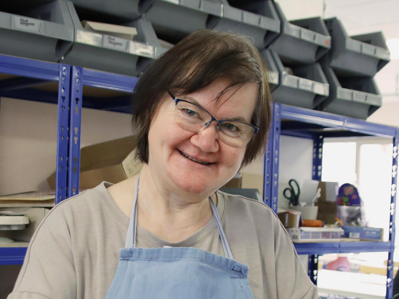 Nach ihrem Besuch der Arbeitsschule Startbahn arbeitete sie für einige Jahre in der antonius Gärtnerei. Doch dann wurde es Zeit für einen Tapetenwechsel, und sie tauschte Harke und Schaufel gegen Nadel und Faden. Dank ihres handwerklichen Geschicks ist sie dort hervorragend aufgehoben. Zwar braucht sie manchmal noch Unterstützung bei einzelnen Fragen, aber durch ihre konzentrierte Arbeitsweise gelingen ihr die kleinen Kisschen von Mal zu Mal besser. In ihrer Zeit bei antonius hat sich die Pasta-Liebhaberin eine immer größere Selbstständigkeit erarbeitet. Mittlerweile lebt sie nicht mehr in einer Wohngemeinschaft, sondern in ihrer eigenen Wohnung.