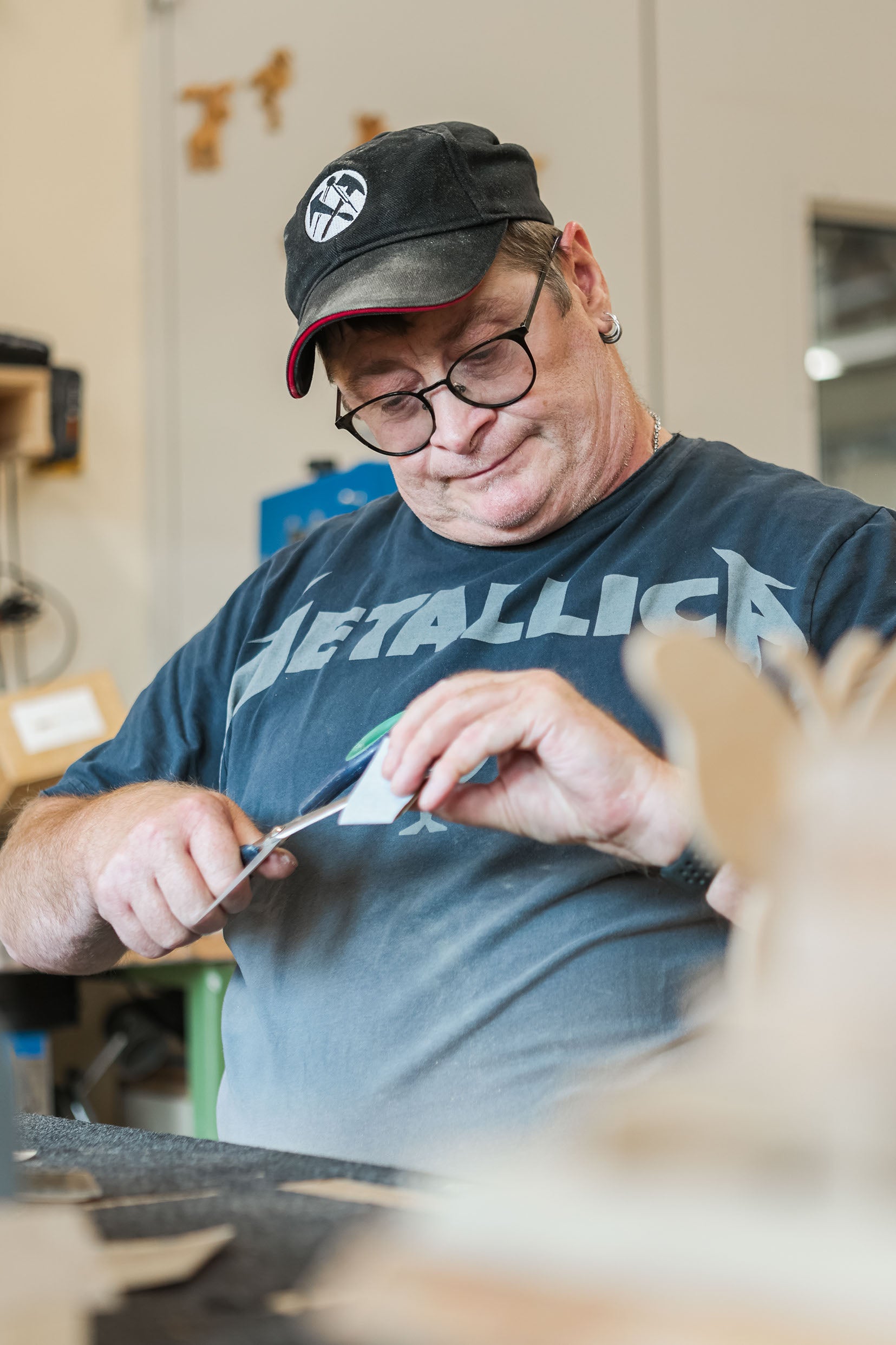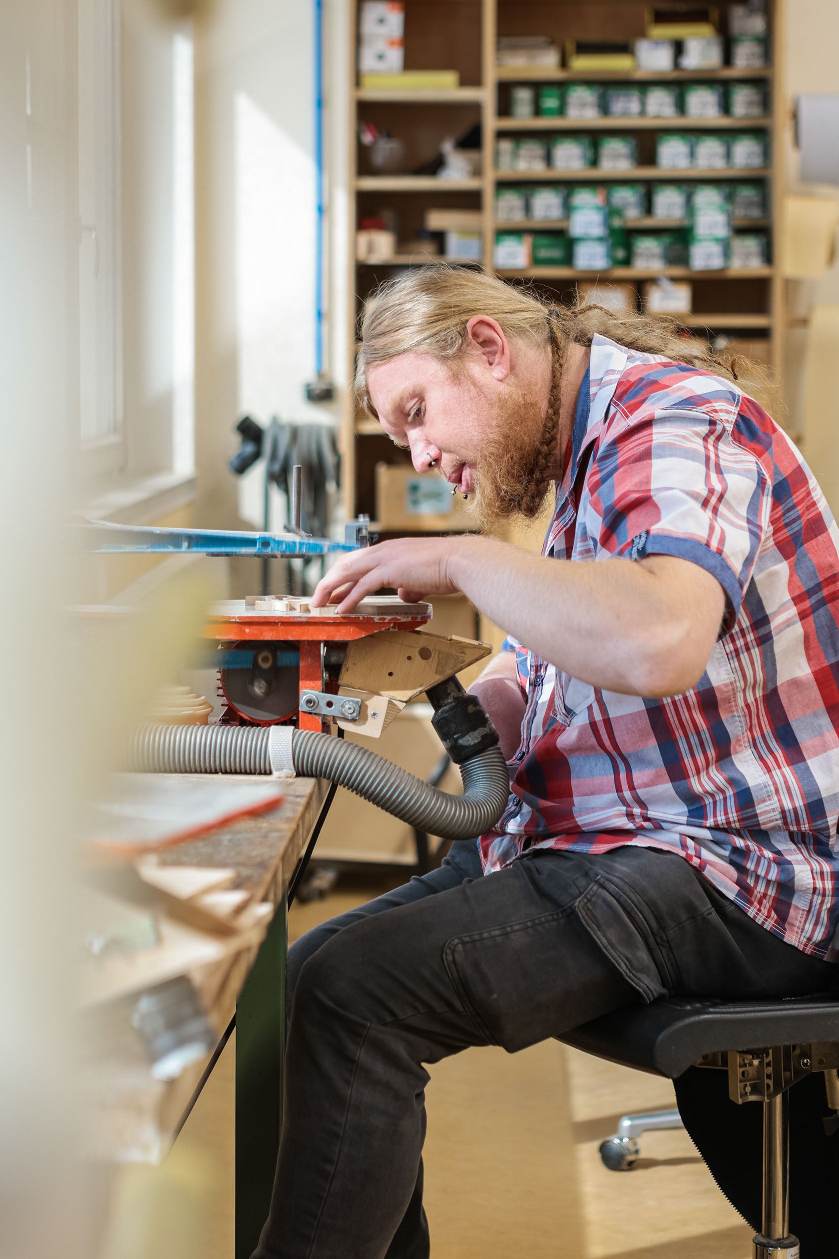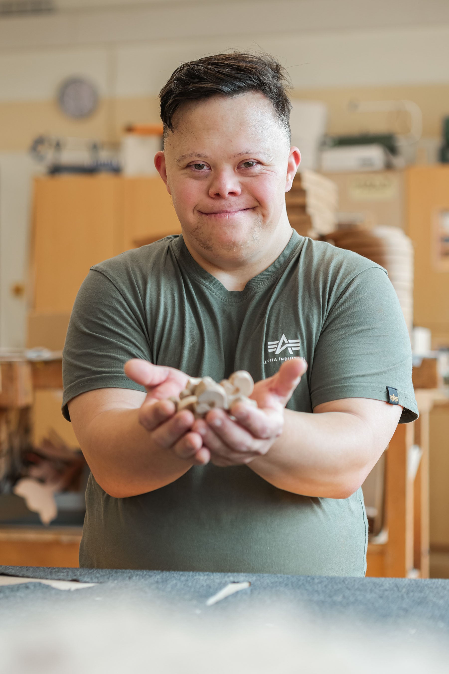 Das Grill-Accessoire gehört zu unserer Marke „Design mit Charakter“ und entsteht im GestaltenWerk, unserer Werkstatt für Holzprodukte und Keramik. Wie immer bei antonius ist auch die Arbeit mit den Hölzern kein Selbstzweck, sondern soll eine sinnvolle und erfüllende Tätigkeit darstellen. Die einzelnen Produktionsschritte vom Sägen der Rohlinge über das Entgraten und Schleifen bis hin zum geölten Finish teilen sich je nach Fähigkeiten unsere Mitarbeiter mit und ohne Behinderungen.